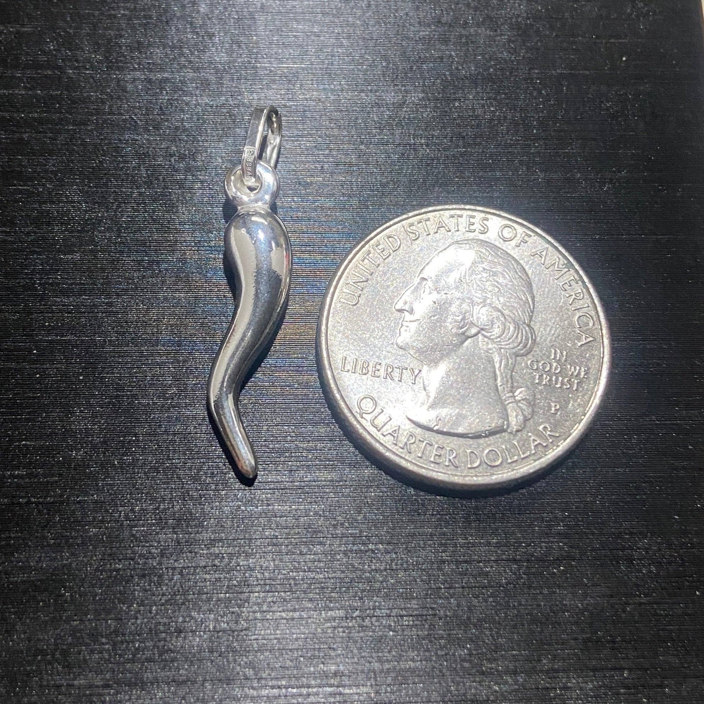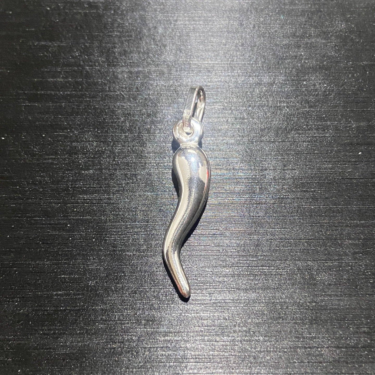 Solid Silver Italian Horn Pendant Only Pendant is: Stamped 925 Italy - Approximately 1 inch long - Real Solid Silver, not Silver Plated or Filled - Packaged well and handled with care.